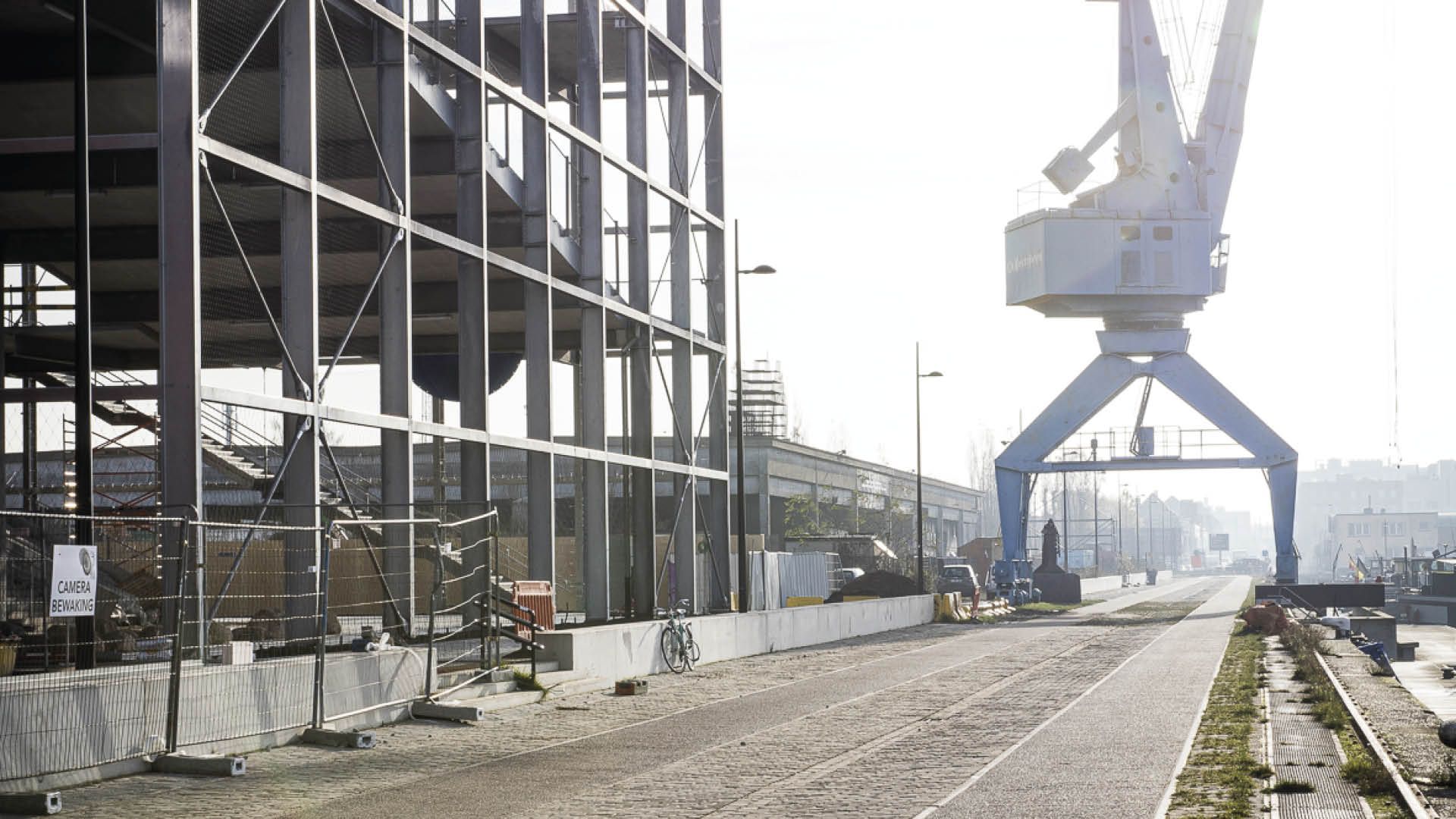 Le long du Handelsdok à Gand, se dresse un bâtiment remarquable et compact complété par une salle verte extérieure, une sorte de pergola géante en acier. Le projet de rénovation urbaine ‘Oude Dokken’, situé autour du Houtdok, de l’Achterdok et du Handelsdok à Gand, est en cours depuis plus de 15 ans. Le ‘bâtiment urbain’ Mélopée comprend une crèche, une garderie extrascolaire, une école primaire et une salle de sport de quartier. Très vite, il est apparu que le vaste programme prévu pour réaliser un tel bâtiment urbain sur l’espace disponible assez limité du site, mènerait à un concept de plan d’école hors du commun. La solution consistait à superposer les différents terrains de jeux, ce qui a conduit au choix d’une structure porteuse ouverte, d’une salle extérieure en acier au bord de l’eau combinée à un bâtiment scolaire compact et rationnel de 40 x 30 m sur le côté est du site. Dans la salle extérieure élancée, les colonnes d’acier sont disposées en grille de 4 x 5 m, ceci afin de limiter la portée et donc de réduire l’épaisseur des dalles de béton à 15 cm.