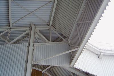 Entrepôts surmontés de volumes en acier